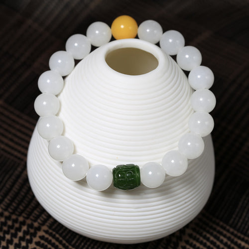 10mm Hetian White Jade Buddha Bead Bracelet Hetian Jasper Fortune Bead Bracelet Beeswax Fortune Bead Bracelet