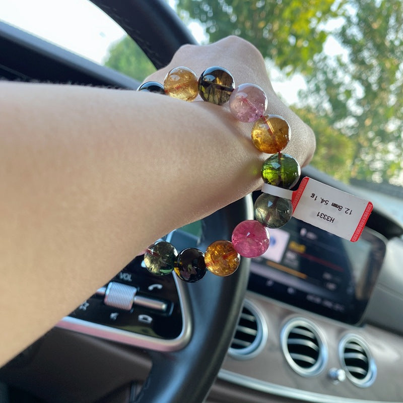 10MM Natural Brazilian Old Material Tourmaline Bracelet Round Beads Large Size Multiple Choices Rich and Transparent
